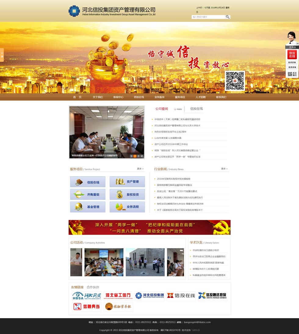 公司旗下的“信投在線”互聯(lián)網(wǎng)金融平臺(tái),運(yùn)用O2O的業(yè)務(wù)模式,以國有信譽(yù)吸收和引導(dǎo)社會(huì)資金,創(chuàng)新金融模式,解決中小企業(yè)融資難題,力爭(zhēng)將該平臺(tái)打造成河北領(lǐng)先的專業(yè)從事金融資產(chǎn)交易、投融資及社會(huì)財(cái)富管理服務(wù)的開放式綜合金融平臺(tái)。